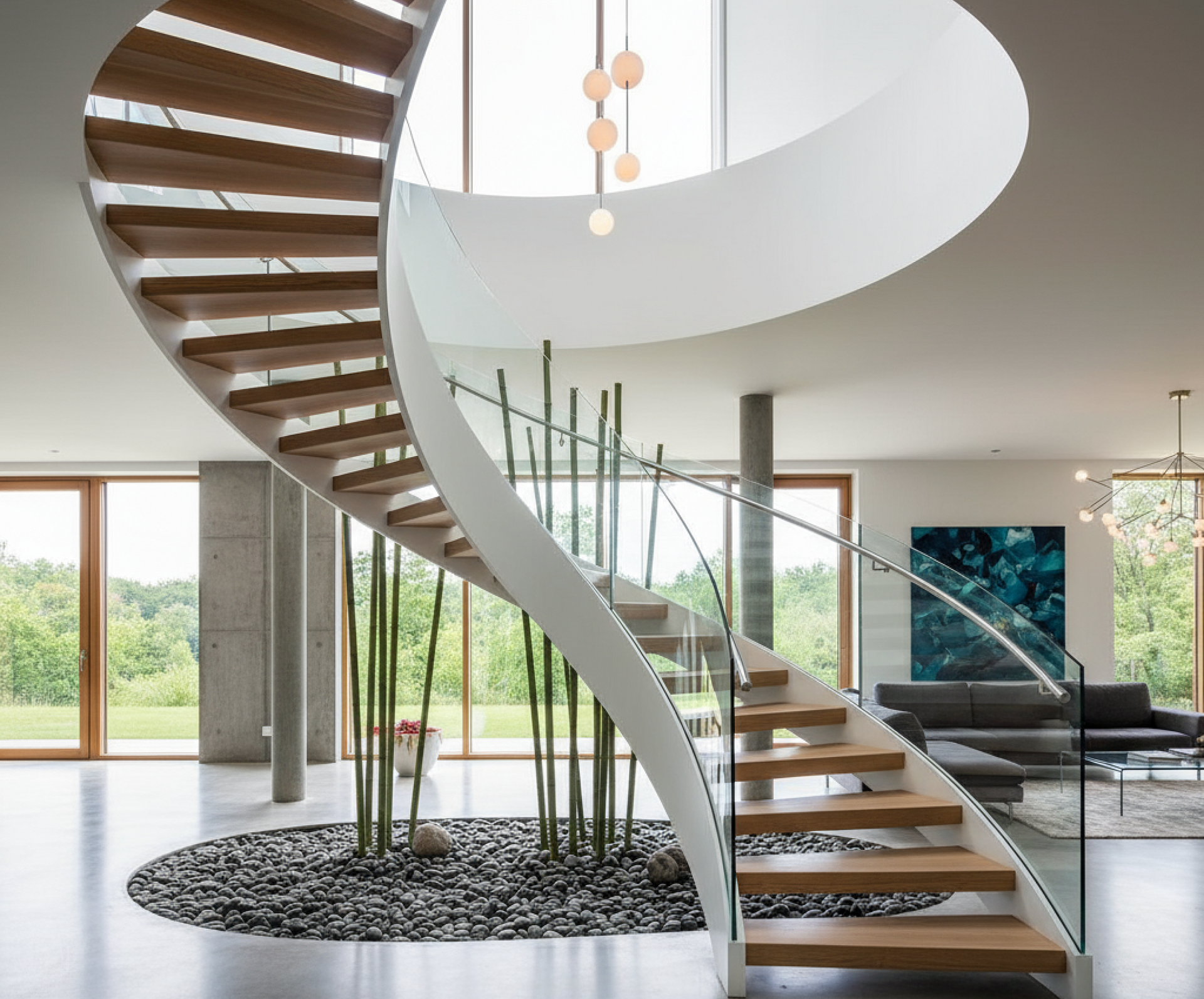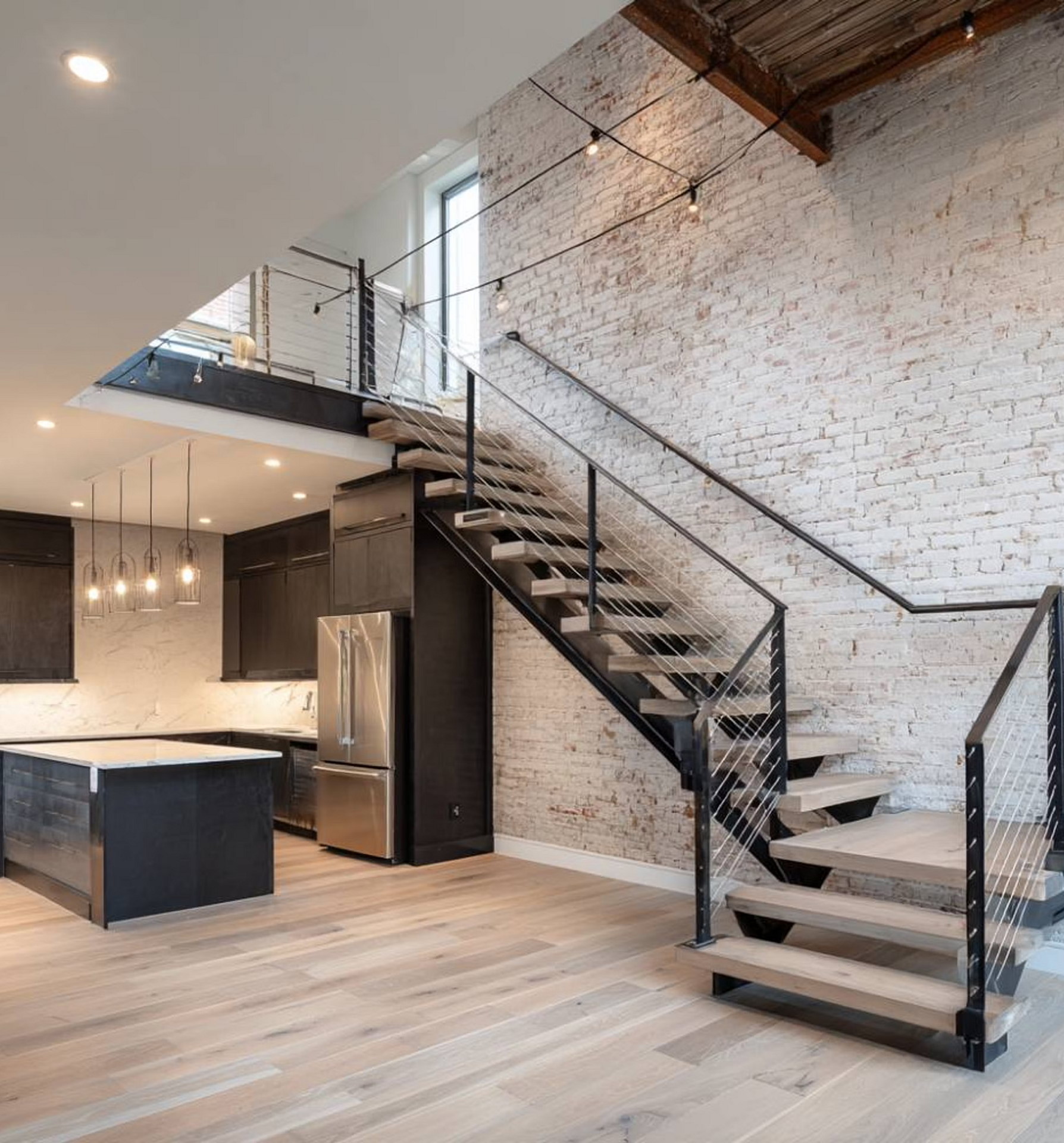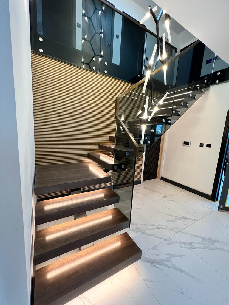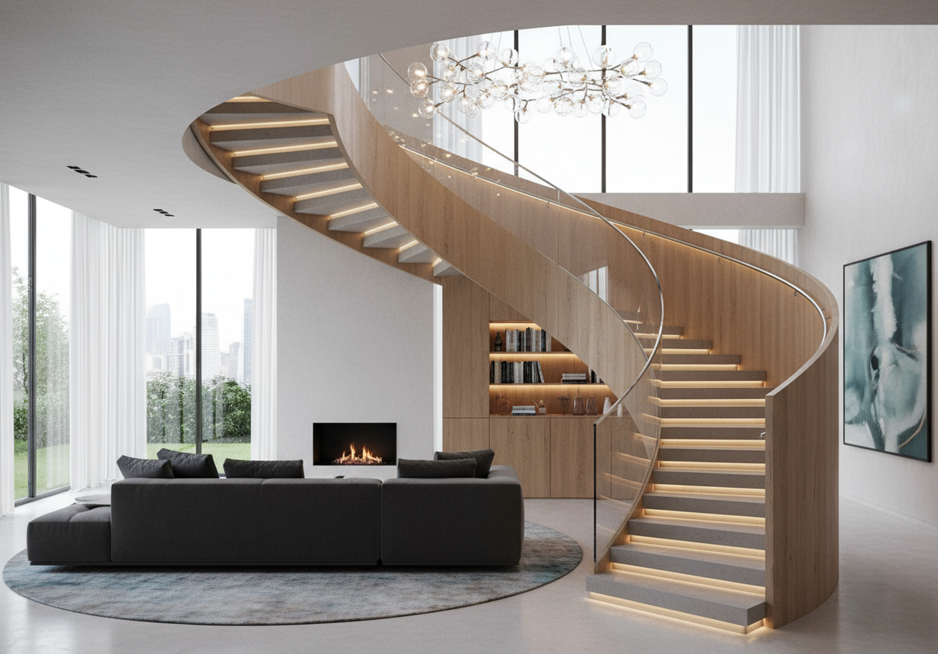 П-образные лестницы идеально подходят для просторных интерьеров, ценятся за удобство и выразительный стиль. Мы разрабатываем облицовку по вашим эскизам, подбираем материалы и детали, создавая гармонию линий и неповторимую эстетику на каждом уровне помещения.