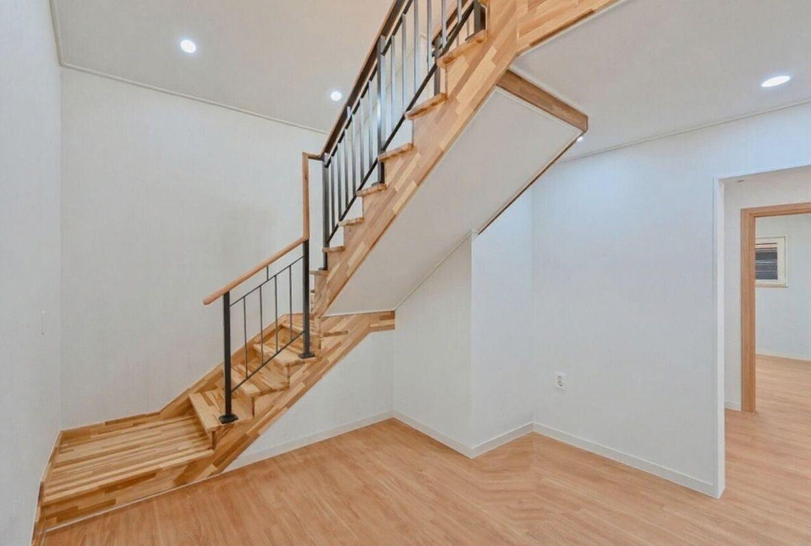 Идея для вашей лестницы: Пространство под лестницей можно эффективно использовать. Разместите там встроенный стеллаж для книг, уютное кресло для чтения или даже небольшой рабочий уголок, превратив подлестничное пространство в функциональную зону.