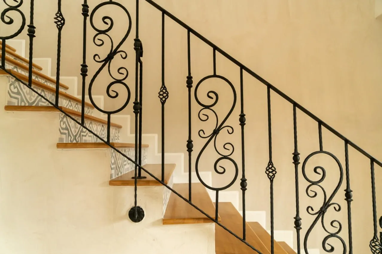 Идея для вашей лестницы: Поэкспериментируйте с цветом кованых элементов. Вместо классического черного можно использовать патинирование под бронзу, медь или серебро. Это позволит идеально вписать перила в ансамбль с другими деталями интерьера — люстрами, дверными ручками или мебельной фурнитурой.